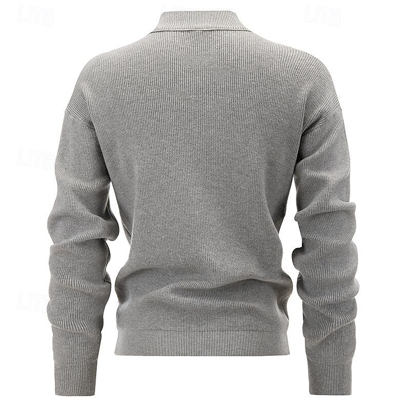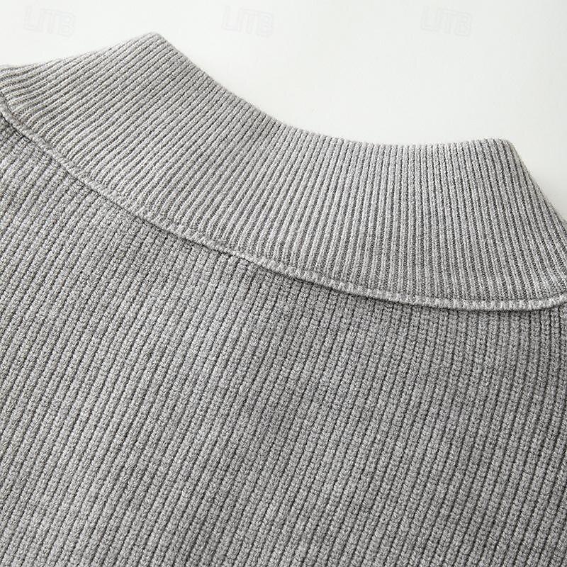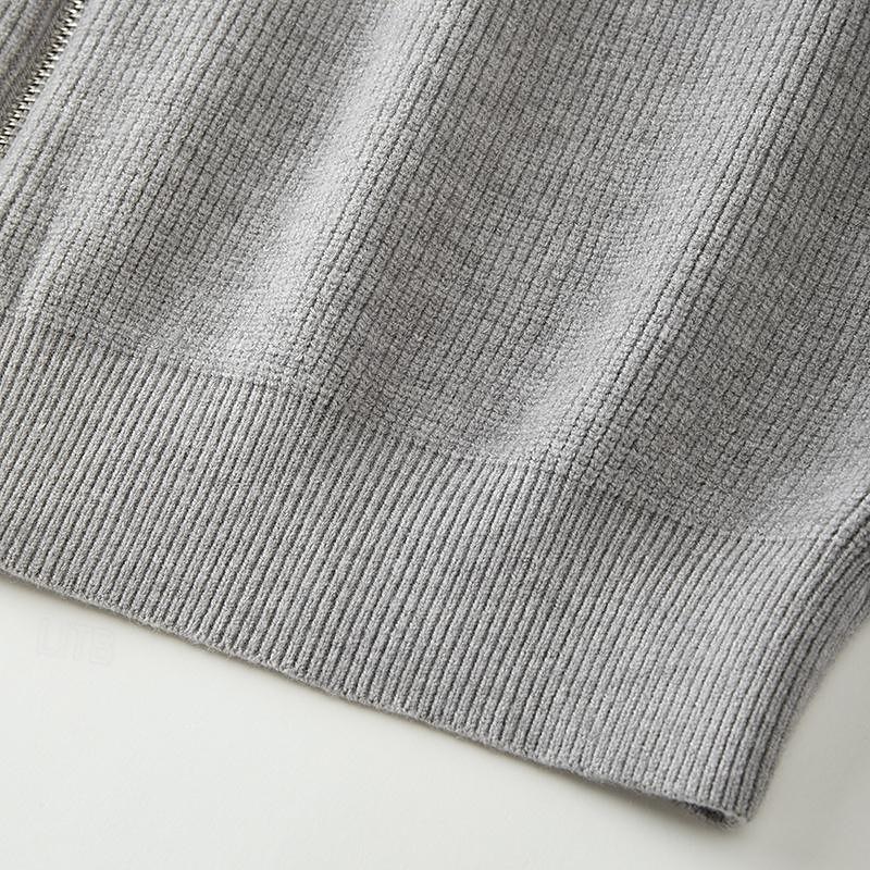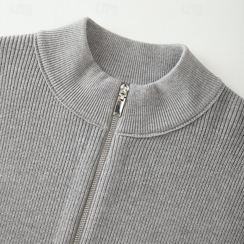 Highlights [Fabric] : Crafted from a high-quality polyester blend with a ribbed knit style, this men's sweater provides both softness and durability, ensuring warmth and comfort for the wearer. Its micro-elastic nature allows for a comfortable fit that moves with you. [Design & Fit] : Featuring a zip-up design and stand collar, this sweater offers a blend of functionality and contemporary style. The ribbed texture enhances the aesthetic appeal while providing a snug fit around the wrists and hem, making it perfect for layering during colder months. The regular fit and cropped length contribute to its timeless and versatile look. [Design Highlights] : The sweater's high stand collar provides extra warmth and protection against the wind, while the overall classic design makes it a stylish choice for fall and winter. The solid color and ribbed texture add to its sophisticated yet casual appeal. [Occasions] : Ideal for daily wear, date nights, vacations, and weekend outings, this sweater transitions seamlessly between casual and smart-casual settings. Its versatile design allows it to pair effortlessly with a range of outfits, making it a wardrobe staple for cooler seasons. [Size Range] : Available in sizes S to 2XL, ensuring a suitable fit for various body types. This sweater is designed to cater to a wide audience, offering both comfort and style for any occasion.