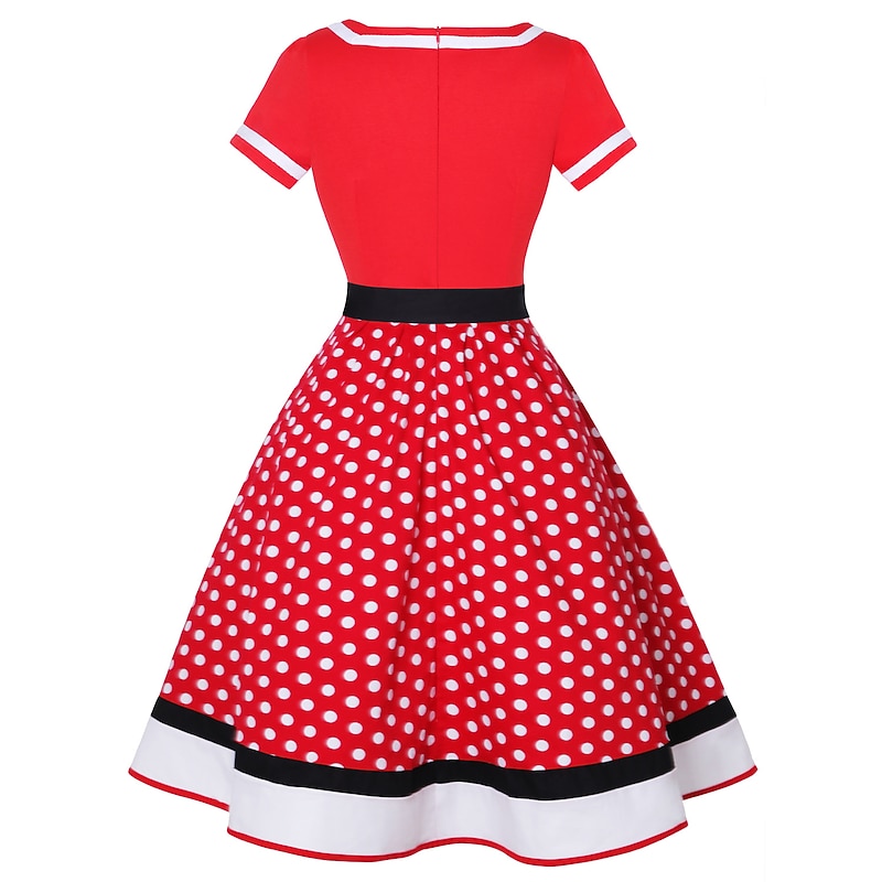 HOT ! 50s Outfit Flare Dress Belt 7 Pcs 1950s Accessories Set Retro Vintage Swing Dress Women's Cosplay Costume Party Date Festival