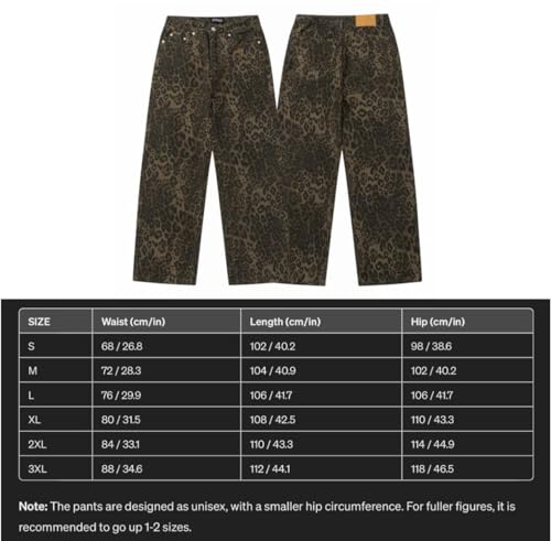 • Unique Cheetah Print: Stand out from the crowd with these eye-catching baggy jeans featuring a distinctive unisex cheetah print. Perfect for casual streetwear aesthetic.