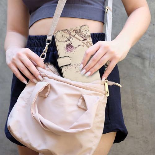 Nugier Women Soft PU Leather Wallet, Zipper Card Case Clutch Credit Bills Money Crash Coin 7.8x4.3x1.4 in Holder Purse Print Vintage Retro Eiffel Tower Bicycle Lavender Flowers 5