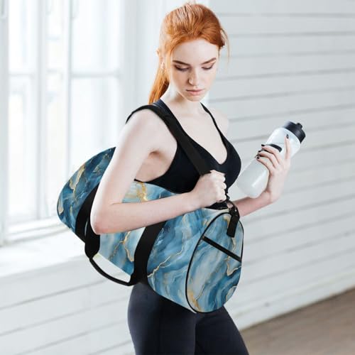 Marble Blue Sports Duffel Bag Full Print Durable Barrel Gym Bag with Large Capacity, Adjustable Strap and Side Zippered Pocket for Fitness Sports Training and Travel 6