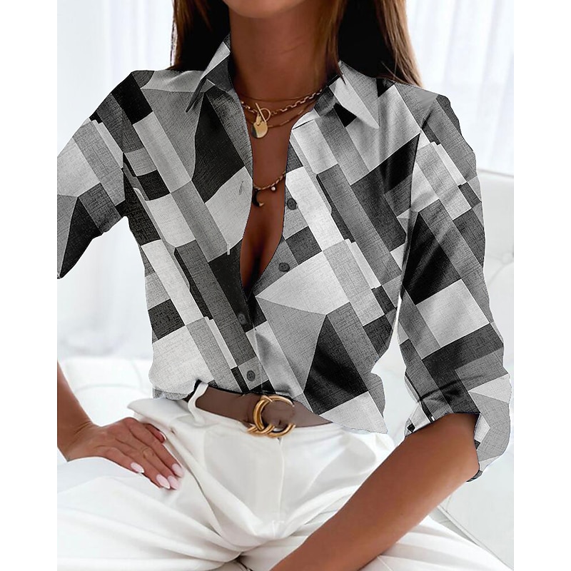 HOT ! Women's Shirt Button Down Tunic Shirt Collar Long Sleeve Elegant Vintage Fashion Geometric s Print Regular Tops Casual Pink Blue Green Khaki Gray Spring Fall