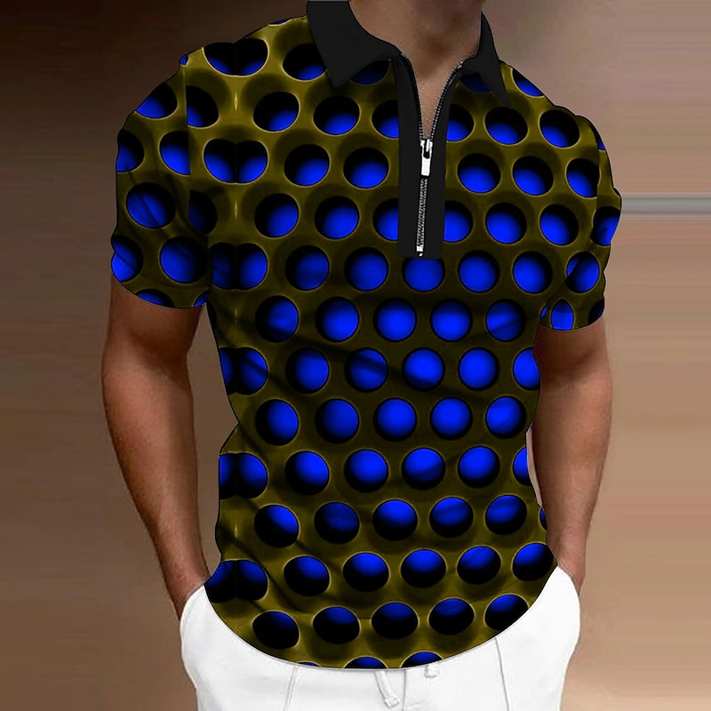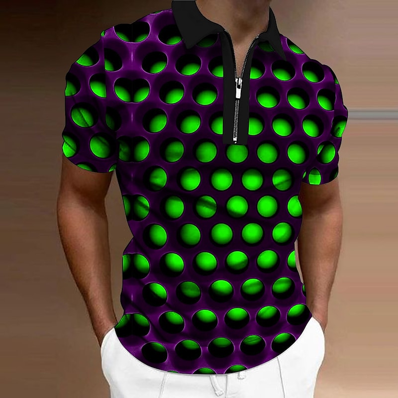 Men's Graphic Zip Polo Shirts Golf Shirt Short Sleeve Polo Shirts Collared Shirts Casual Vacation Wear Rave Wear Party Outfits 3D Print Quarter Zip Polo Red Blue Purple