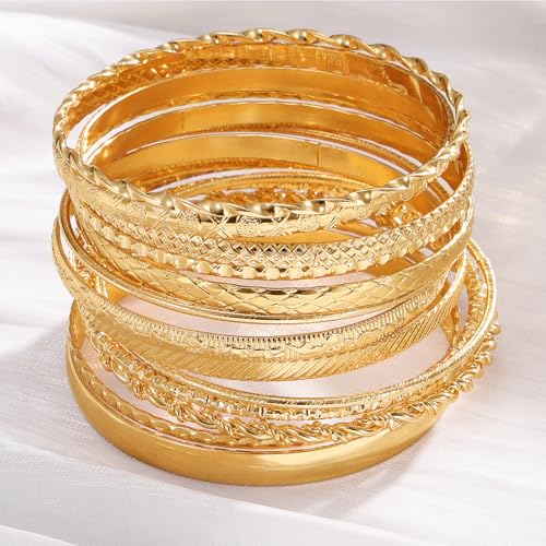 • 【BOHO GOLD BANGLE】: 13 pcs bracelet with unique chic bangle featuring gold carve twist textured more simple fashion style, Perfect for boho, indian or daily outfit.