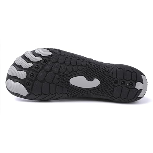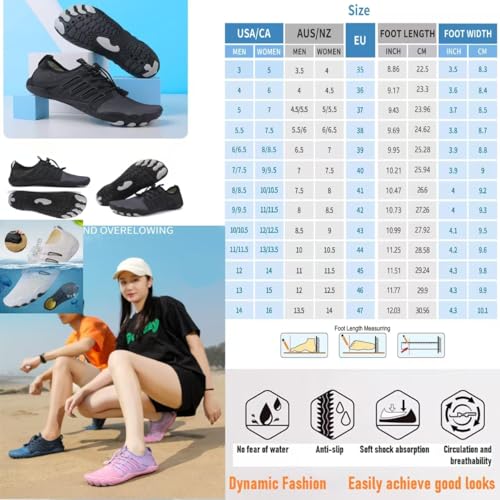 Sole material: RubberOuter material: RubberClosure type: ButtonWater resistance level: WaterproofRefreshing Breathable: Barefoot shoes with soft space layer and hollow insole, which can promote air circulation in the shoe, quickly and effectively perspire, and keep your feet dry and breathable. Let you feel comfortable when wearing and walking for a long time. Whether you are exercising indoors or outdoors, you can feel the lightness, painlessness and comfort of barefoot, allowing you to enjoy every step.Non-slip rubber bottom: Barefoot shoes are made of ultra-wear-resistant sole materials, five-toe protection and non-slip design, excellent grip and support stability, anti-collision and anti-kick, prevent various sharp injuries, Barefoot shoes are non-slip and flexible, promote a natural walking style, strengthen the muscles of the feet and legs,Carefully protect your health . Let you feel the joy of exercise and its breathable, painless, flexible and comfortable wrapping feeling!Quick drying and drainage: The barefoot shoes are designed with drainage holes on the soles, which can effectively and quickly drain the water in the shoes, and your feet can be kept dry and breathable at all times. The wide toe of the women's barefoot shoes combined with the flexibility of barefoot shoes allows the toes to move and stretch freely, enhancing the strength and flexibility of the feet. Our barefoot shoes Women Men allow your feet to breathe and relieve stress on your joints.Lightweight stunning: The barefoot water shoes adopt fashionable offset printing technology, which is cool and beautiful. The elastic shoe mouth and adjustable lock buckle can be quickly put on and taken off or adjusted tightness. The barefoot shoes are soft and elastic, and can be twisted at will without deformation. Hike Barefoot Shoes For Women Men can save your time of tying shoelaces every day, light and flexible, easy to carry for daily fitness or outdoor activities.Versatile Style: The comfortable weight and breathable design of barefoot shoes make them the first choice for daily use. Whether it is hiking, cycling, off-roading, yoga, fishing, boating, surfing, swimming, aerobics, etc., wide-toe water shoes can be used for all water and land occasions! Women's barefoot hiking shoes are breathable, non-slip, painless and comfortable. Hike Barefoot Shoes Suitable for Women, Men, young and old. They are also suitable for long-term standing work. Perfect for everyday use. top-grade materials and excellent craftsmanship ensure long-lasting durability.