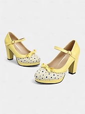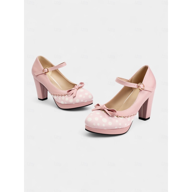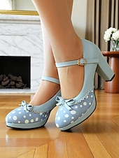More information about Women's Blue Polka Dot Block Heel Mary Janes – 1950s Vintage Style with Bows, Ideal for Tea Parties, Dates & Lolita Fashion
