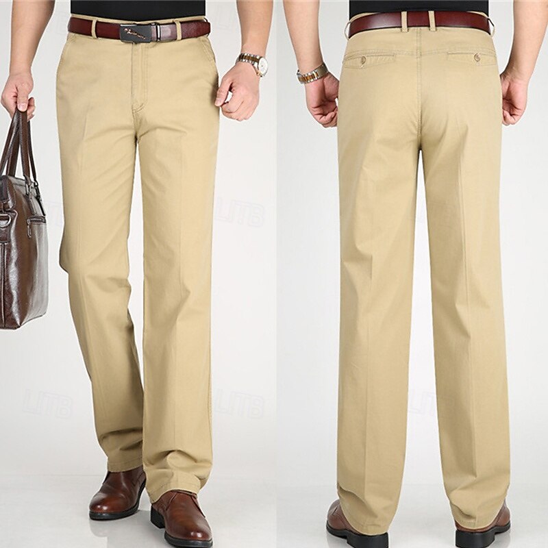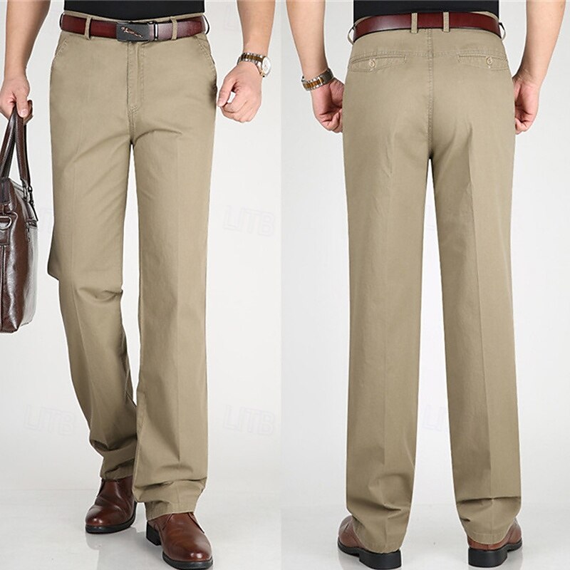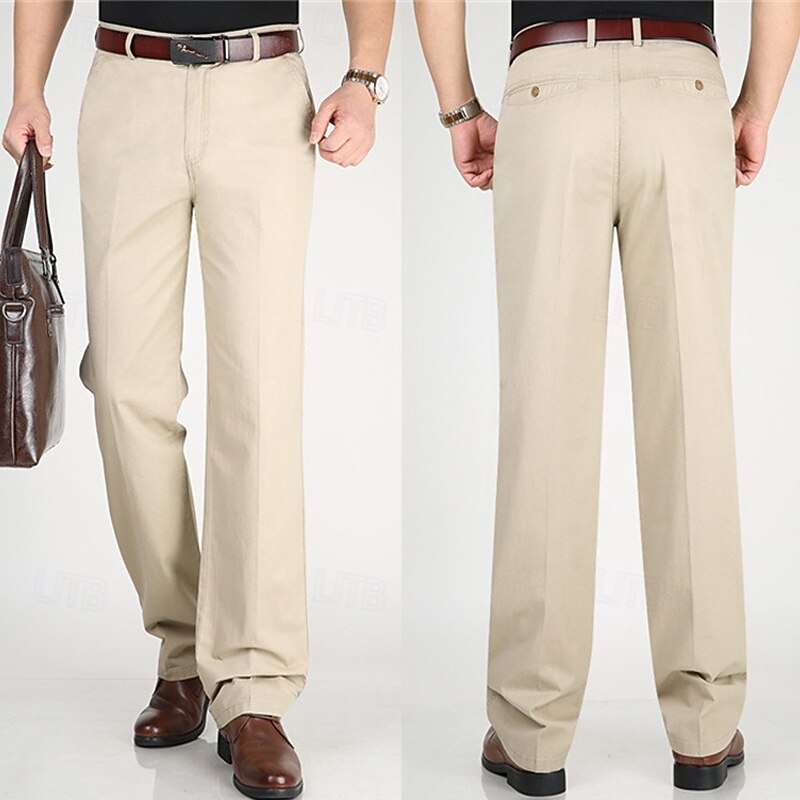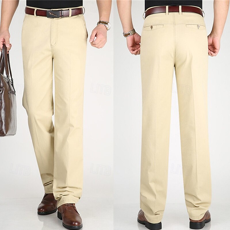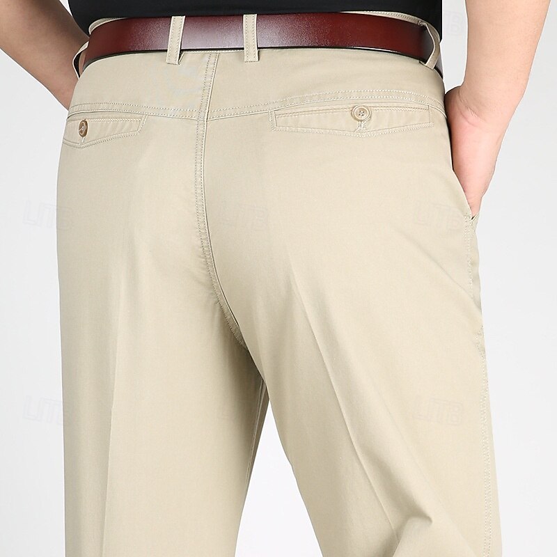 More information about Men's Dress Pants Trousers Chinos Buttons Pocket Straight Leg Plain Comfort Formal Party Work Fashion Classic Style Dark Khaki Light Khaki Micro-elastic