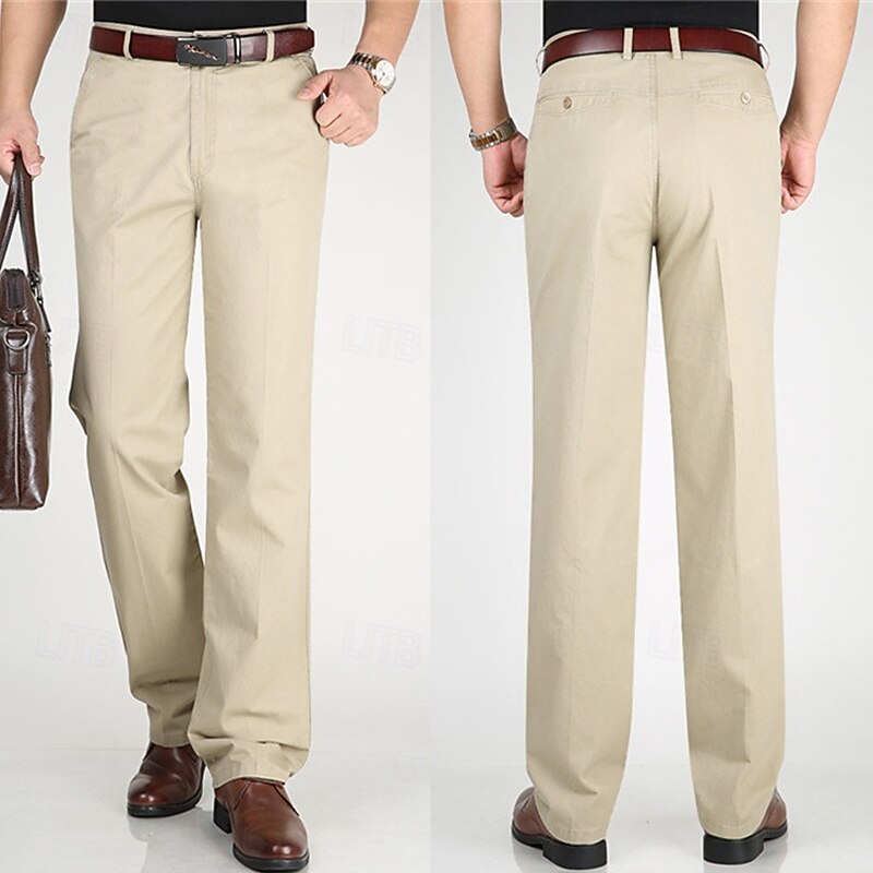 HOT ! Men's Dress Pants Trousers Chinos Buttons Pocket Straight Leg Plain Comfort Formal Party Work Fashion Classic Style Dark Khaki Light Khaki Micro-elastic