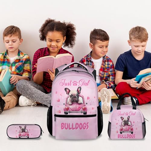 HOT ! UNIKITTY Kids Backpack with Lunch Box - School Bags for Girls - French Bulldog Backpack for Dog Lovers - 17 Inch Toddler Schoolbag with Pencil Case