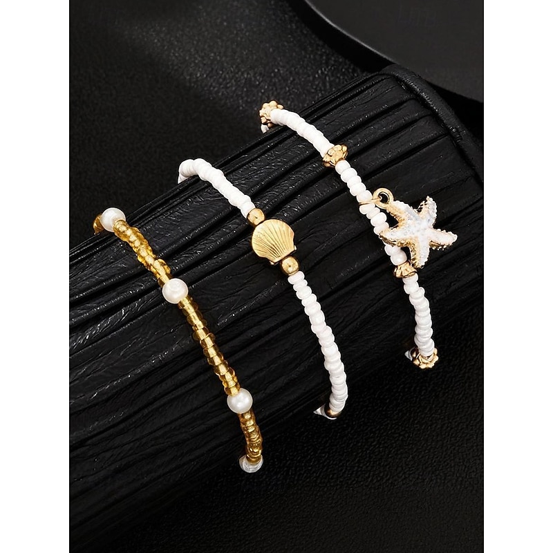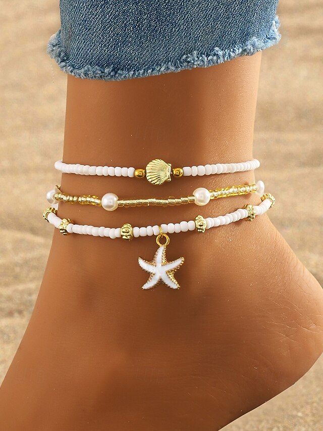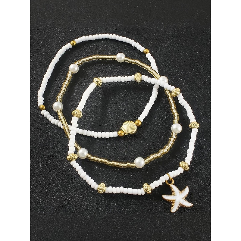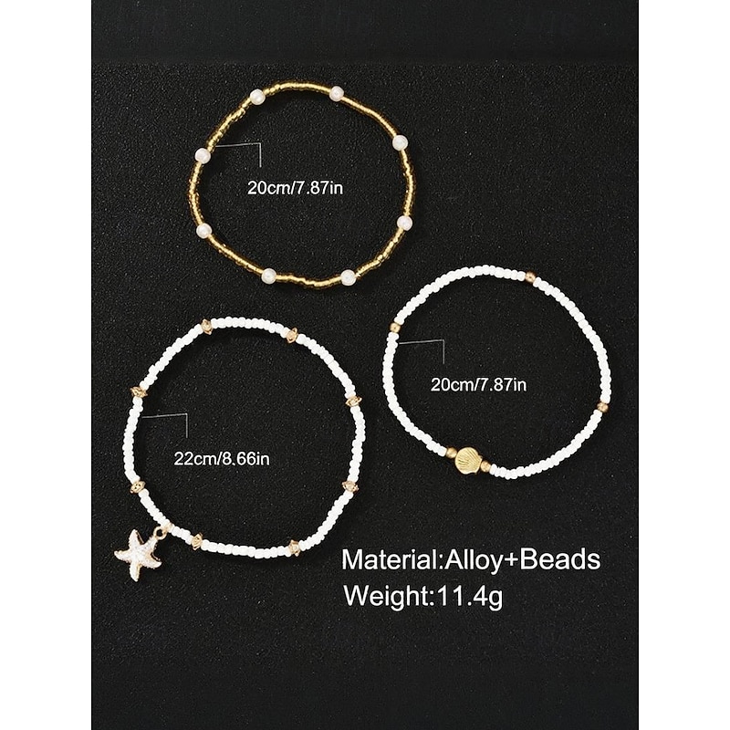 $7.99 - Women's 3-Piece Beaded Anklet Set – Gold Alloy and White Beads with Starfish and Shell Charms, Bohemian Beach Jewelry for Summer Vacations and Casual Outfits 2025. Shop for cheap Women's Bracelet online? Buy at lightinthebox.com on sale today!