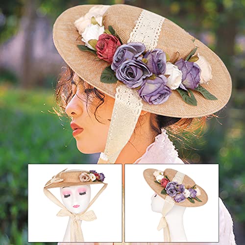 Girls Women Victorian Tea Party Sun Hat Costume Small Flat Top Hat with Flower Purple 6