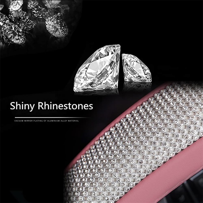 New Diamond Leather Steering Wheel Cover with Bling Bling Crystal Rhinestones Universal Fit 15 Inch Car Wheel Protector for Women Girls 2