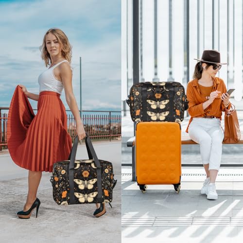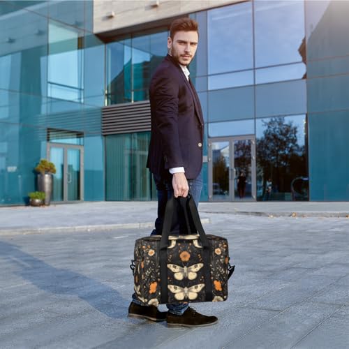 HOT ! Flowers Moths Travel Duffel Bag for Men Women Vintage Moon Sports Gym Bag Waterproof Weekender Overnight Bags Foldable Carry on Backpack for Swim Yoga Fitness Workout