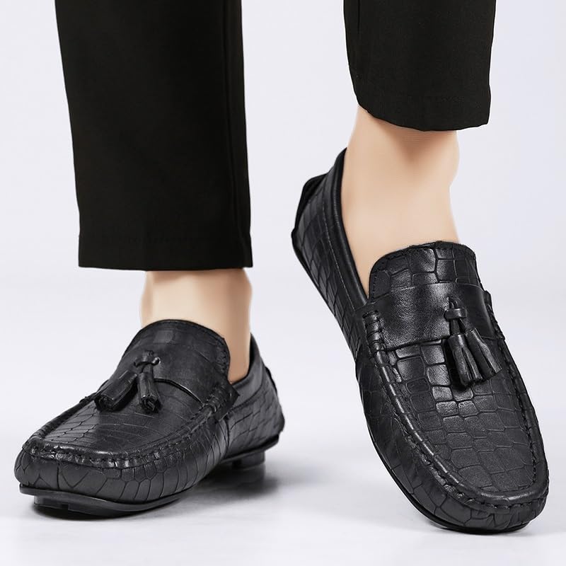 Loafers for Men Round Toe Leather with Tassel Driving Moccasins Loafers Lightweight Slip Resistant Flat Heel Outdoor Slip-ons 7