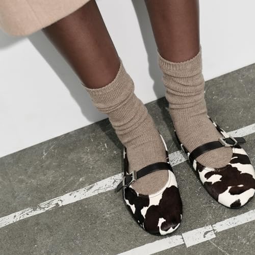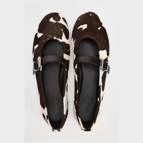 HOT ! Leopard Ballet Flats for Women Animal Cow Print Round Toe Mary Jane Flats Silver Buckle Comfortable Ballerina Shoes