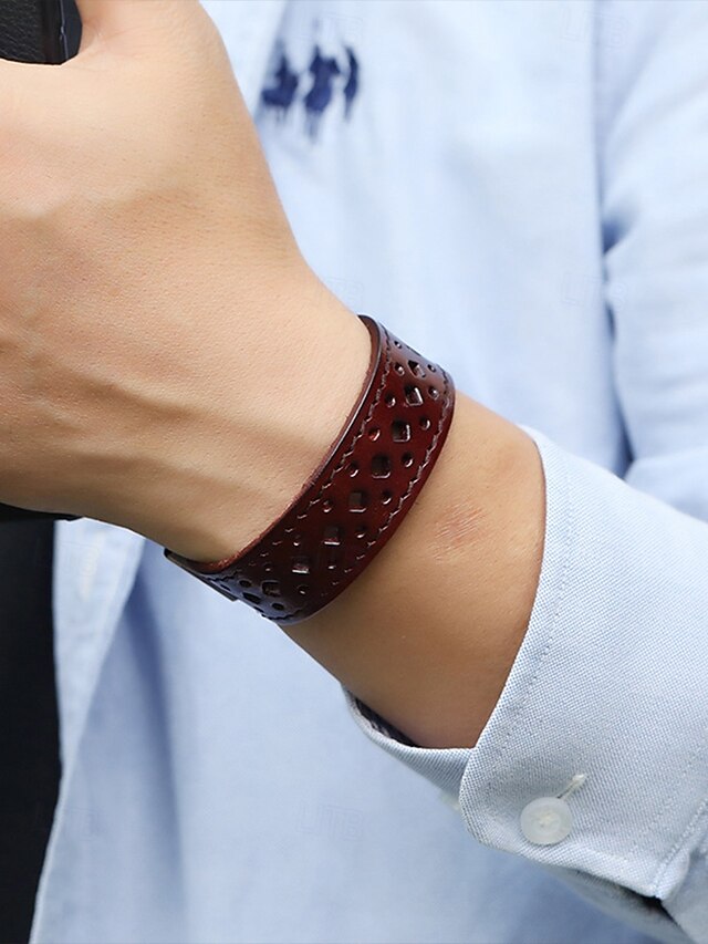 $11.99 - Men's Bohemian Genuine Leather Hollow Bracelet - Vintage Adjustable Cuff Wristband for Casual, Business and Holiday Wear 2025. Shop for cheap Men's Jewelry online? Buy at lightinthebox.com on sale today!