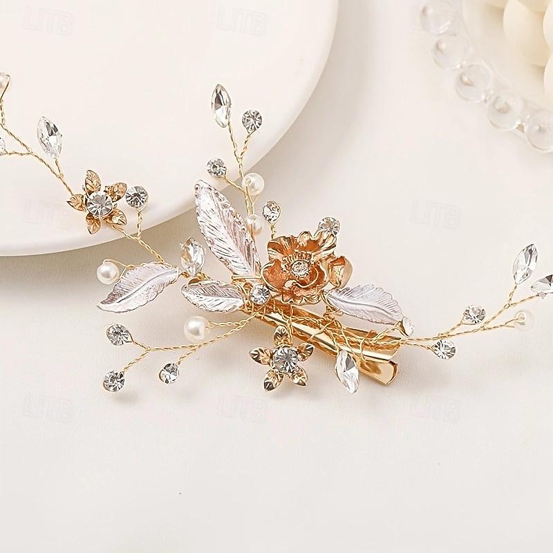 $13.49 - Golden Silvery Flower Leaf Crystal Hairpin Hair Clip Tiara Bridal Wedding Hair Accessories Headpiece Jewelry Ornaments 2025. Shop for cheap Hair Styling Accessories online? Buy at lightinthebox.com on sale today!