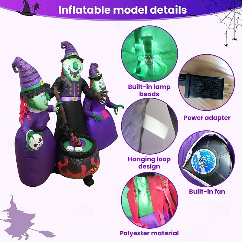More information about 1 Pc 1.9M/6.23FT Halloween Three Witch Soup Making LED Light Inflatable Air Model Indoor and Outdoor Courtyard Garden Lawn Party Christmas Horror and Weird Atmosphere Decorative Light US/EU/UK/AU Plug