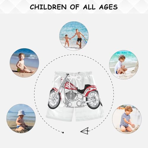 Boys Beach Board Shorts Motorcycle White Fire Swim Trunk Teen Swimwear 8-16Y
