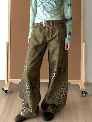 More information about Unisex Y2k Vintage Distressed Gradient Leopard Print Wide Leg Jeans Hiphop Streetwear Grunge Loose Casual Denim Pants
