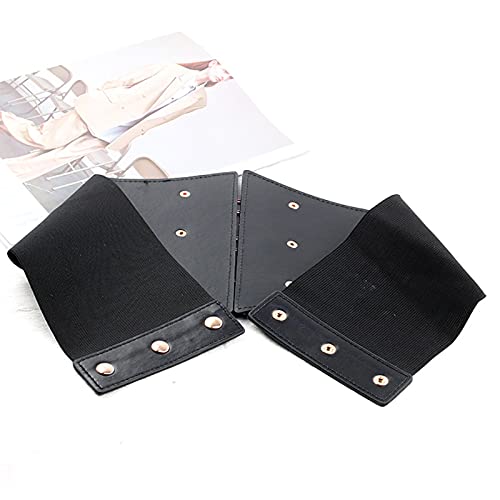 • Corset Belt for Waist - Wide Costume cinching belt with tied corset leather on the front, elastic webbing band on the back, snap button closure to lock the belt