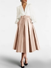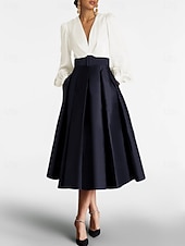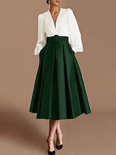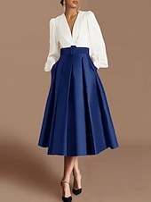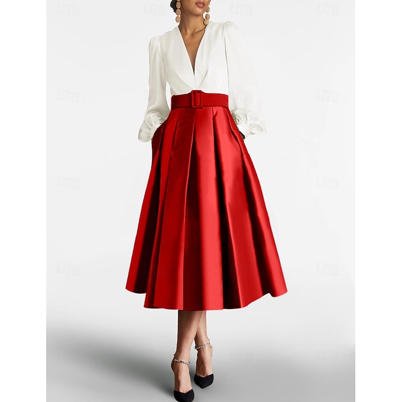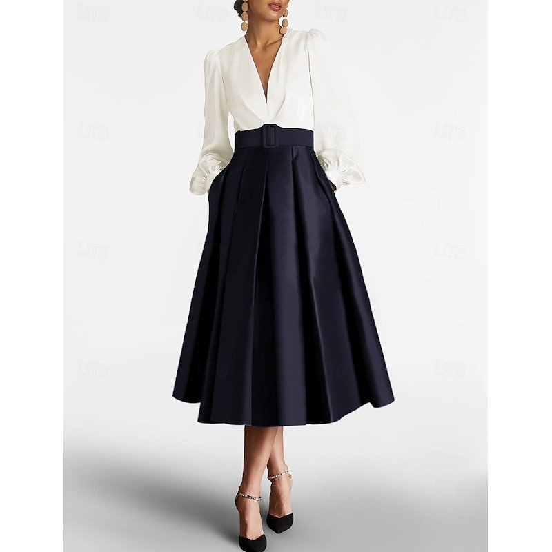 More information about Beach Wedding A-Line Cocktail Dresses Elegant Dress Formal Wedding Guest Tea Length Long Sleeve V Neck Satin with Ruched Dresses
