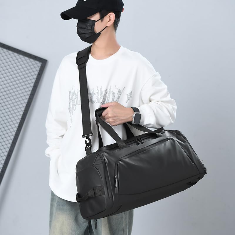 HOT ! Sports Duffel Bag, Waterproof Travel Gym Bag with Shoulder Strap, Large Capacity, Black