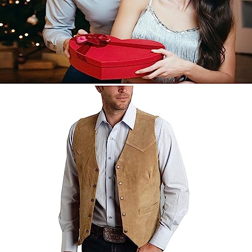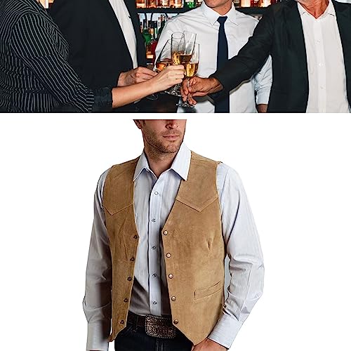 Mens Retro 5 Button Suede Suit Vest V Neck Leather Casual Waistcoat for Prom Banquet for Father Husband Gift Regular Fit 5
