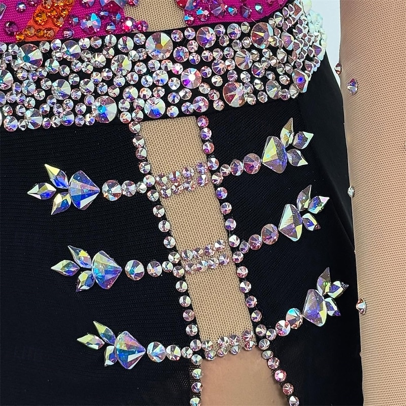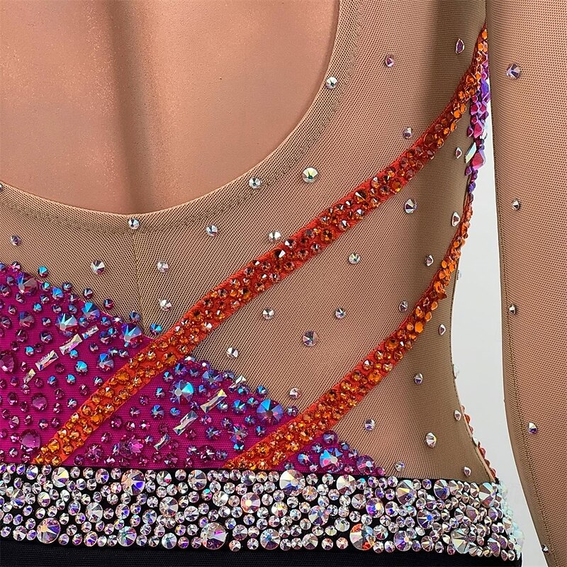 More information about Figure Skating Dress Women's Girls' Ice Skating Dress Rose Red Patchwork Open Back Mesh Spandex High Elasticity Training Competition Skating Wear Classic Crystal / Rhinestone Long Sleeve Ice Skating