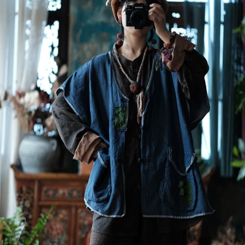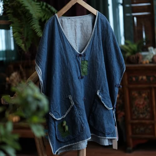 • Design:V neck, cap sleeve, tunic length and denim blue color makes this shirt simple and chic.exquisite hand craftsmanship embroidery and beautiful knot flower,pockets,A must-have cute shirt for spring and summer wardrobe.