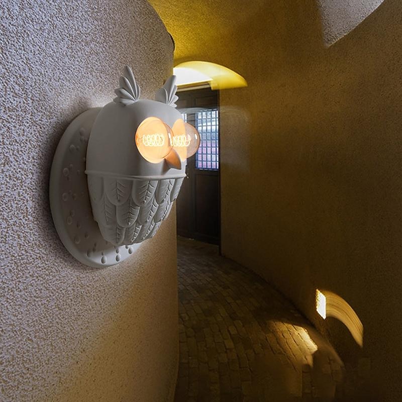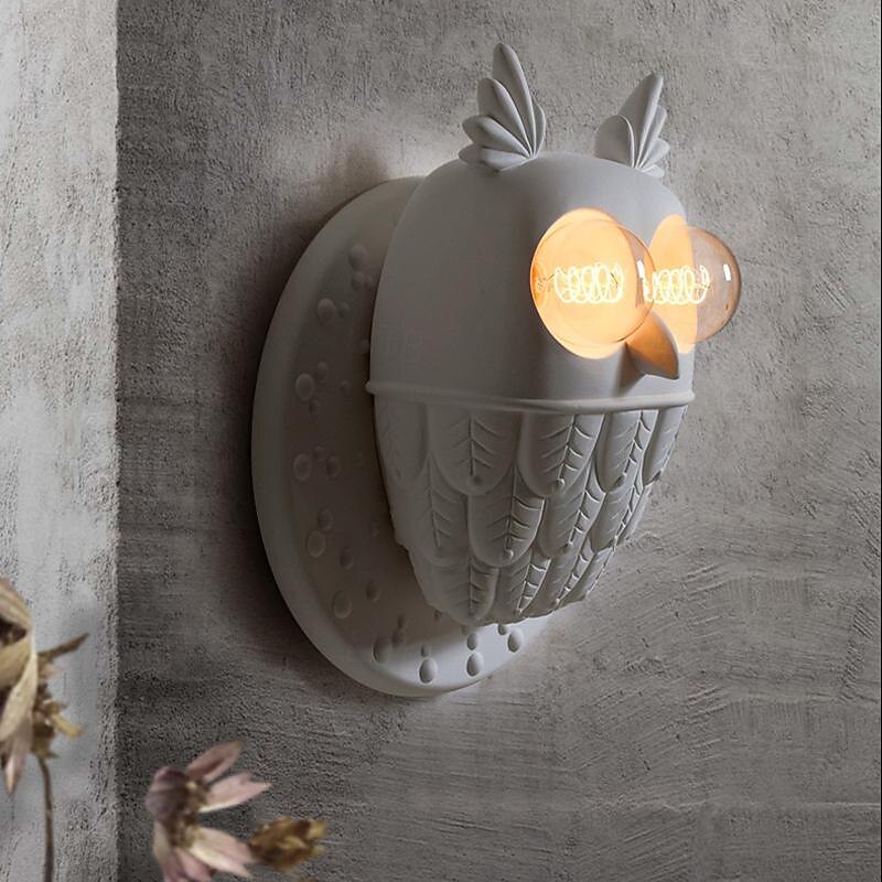 LED Indoor Wall Lamp Warm White 28/40cm E27 Vintage White Owl Wall Sconce Light Decorative 2 Lamp Resin Wall Mounted Light for Corridor Kids Room 110-240V 9