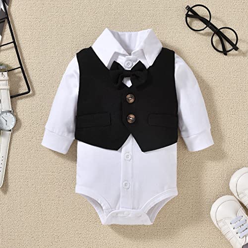 • UNIQUE GENTLEMAN DESIGN : Aalizzwell classic crew neck gentleman outfit. Vintage suspender pants + cotton bodysuit + formal little vest. It looks especially smart! Every detail is designed for the babies, snaps closure for easier diaper changing!