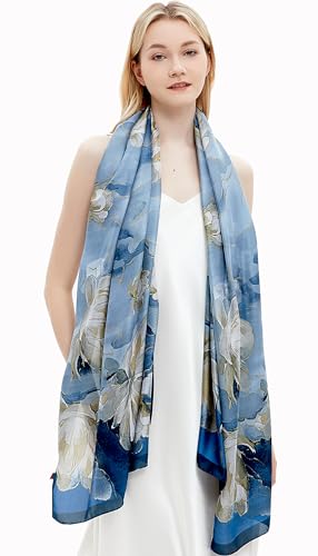 • OVERSIZE: L: 70.8 " W: 35.4" (180x90cm). Long silk scarf the large size can be used for many purposes, whether it is used as a silk scarf for hair wrapping at night, silk hijab, head wear, shawls and wraps on the shoulder or beach sarong.