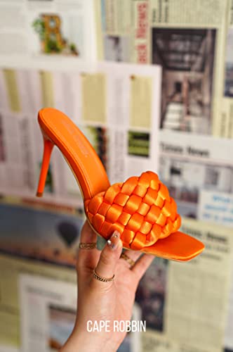 Cape Robbin Women's Stiletto Heel Sandals - Square Open Toe Slip-On High Heels with Braided Upper (Miella) 5