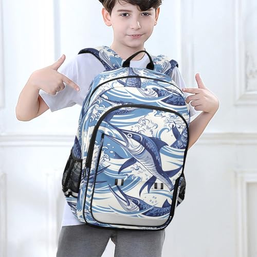 Marlin Fish Colorful Backpack for Boys Girls Elementary School Bag Kids Bookbag Travel Rucksack With Reflective Stripes 6
