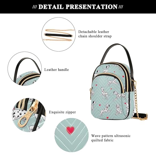 Single Shoulder Handbags Fun Phone Wallet Chain Strap Purse Quilted Zipper Satchel Crossbody Tote Cute Dalmatians Hearts Blue 5