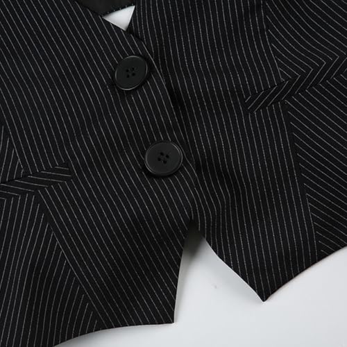 YiZYiF Women's V Neck Button Down Crop Vest Top Striped Business Sleeveless Waistcoat Vintage Grunge Suit Vest Y2K Streetwear 4