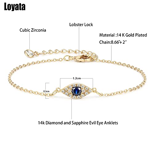 More information about LOYATA Dainty Ankle Bracelet,14K Gold Plated Tiny Bead Anklet Dainty White Cubic Zirconia Cross Tassel Foot Chain Cute Lucky Moon Evil Eye Foot Jewelry Boho Anklets for Women