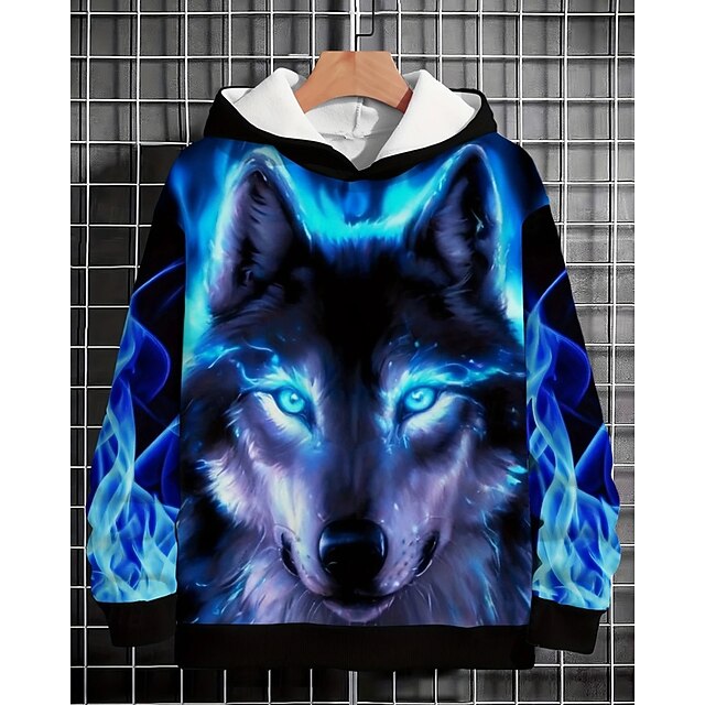 HOT ! Boys' 3D Wolf Hoodie Long Sleeve Spring Fall Fashion Streetwear Kids 4-12 Years Hooded Outdoor Casual Daily Regular Fit