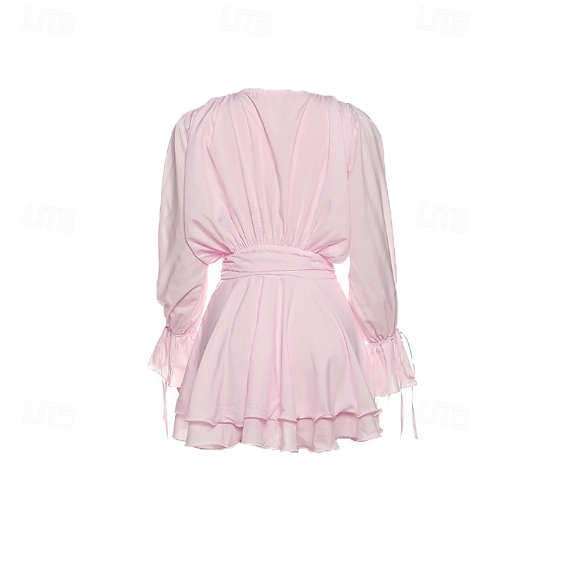 More information about Women's Mini Dress Ruffle Dress Vacation Birthday Cocktail Flare Cuff Sleeve Party Birthday Daily Regular Fit Plain Long Sleeve Crew Neck White Pink Summer Spring Fall