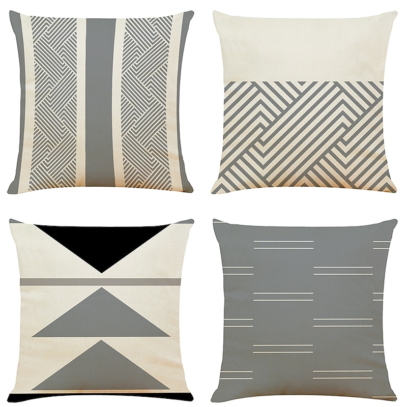Cushion Cover 4PC Soft Decorative Square Throw Pillow Cover Cushion Case Pillowcase for Sofa Bedroom Superior Quality Mashine Washable Faux Linen Cushion for Sofa Couch Bed Chair