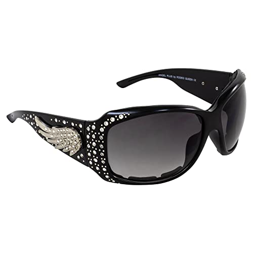More information about Rodeo Queen Angel Padded Motorcycle Bling Sunglasses for Women Black Frame w/Bling Rhinestones & Smoke Gradient Lens