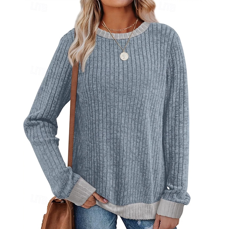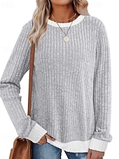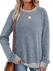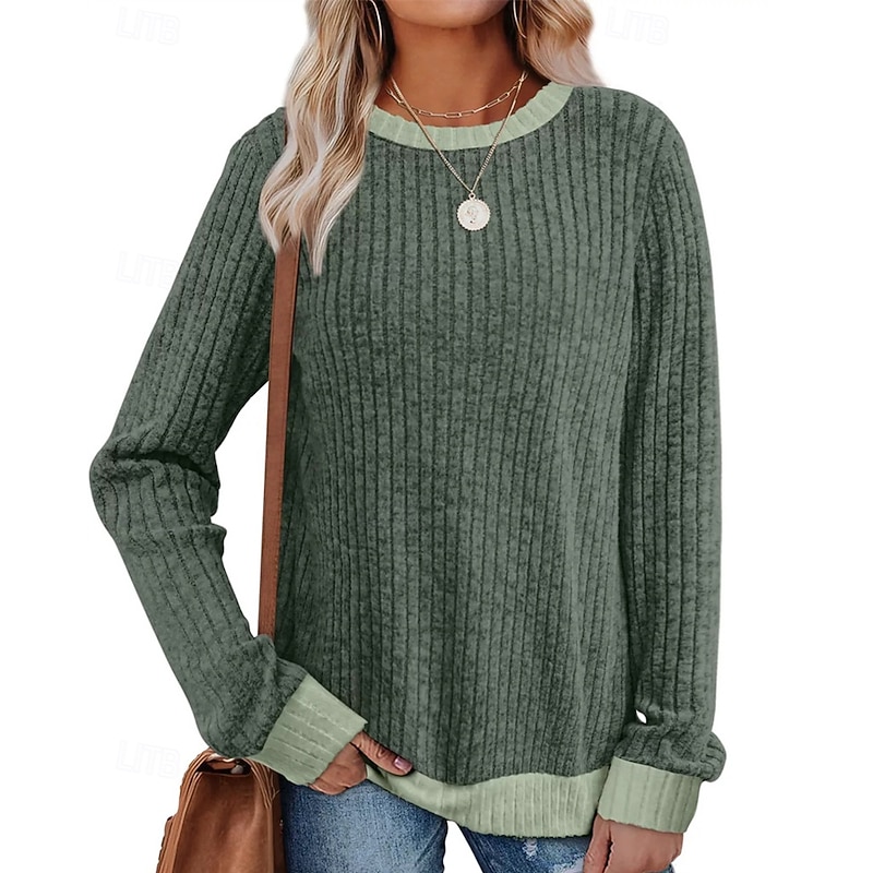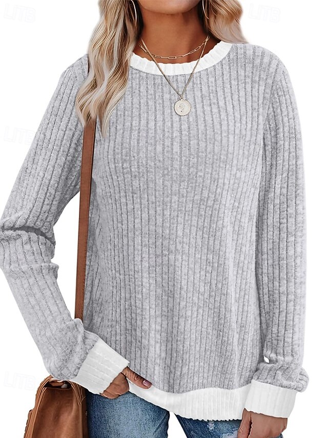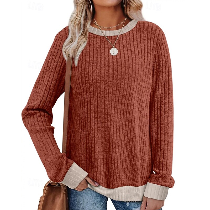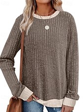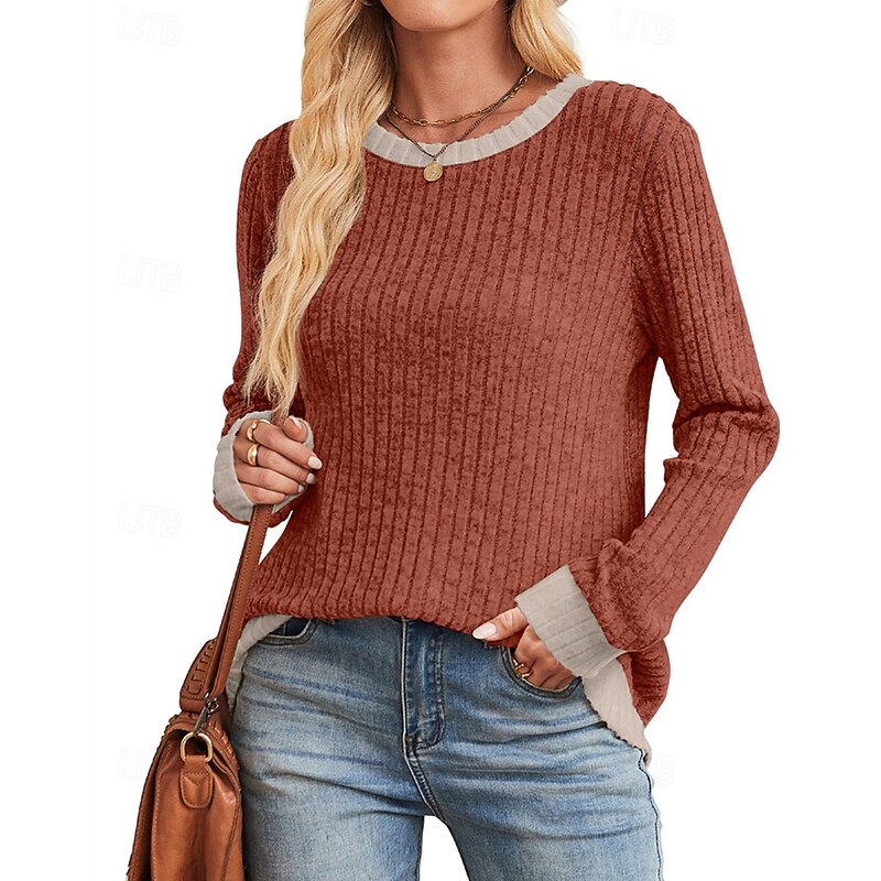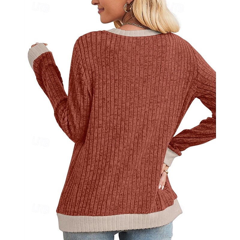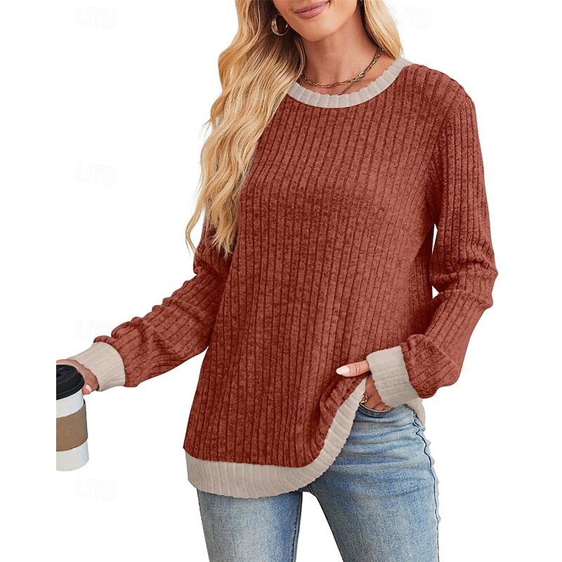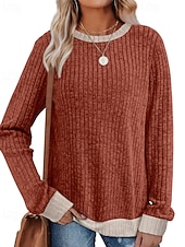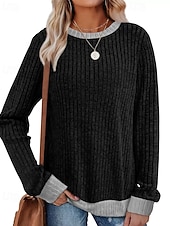 More information about Women's Sweater Pullover Daily Stylish Casual Color Block Ribbed Crew Neck Knitted Long Sleeve Regular Tops Knit Daily Holiday Going out Black Red Fall Winter