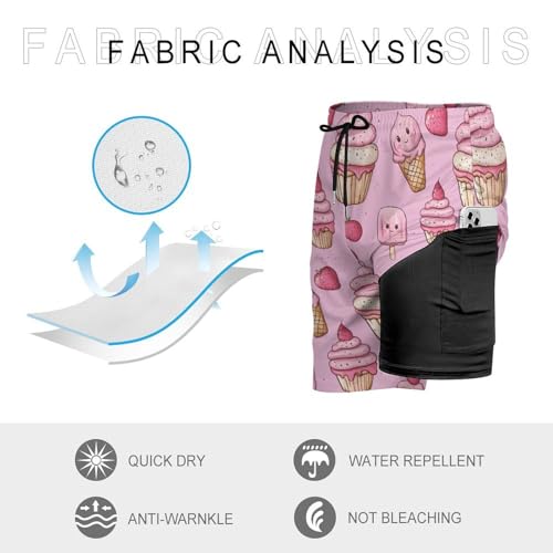 Strawberry Cupcakes and Ice Cream Mens Swim Trunks with Quick-Drying Lining Beach Shorts for Outdoor Sports 5