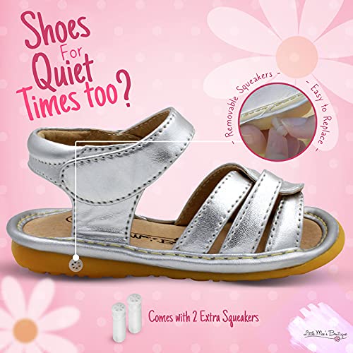 HOT ! Little Mae's Boutique Mary Jane Two Flower and Gleeful Squeaky Sandals for Toddler Girls, Walking Sandals with Removable Squeaker & Adjustable Strap - Soft Sole Sandals for Little Girls