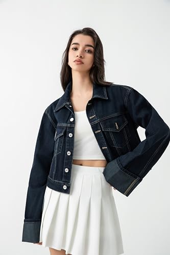 More information about Women's Cropped Denim Jacket Button Up Long Sleeve Turn-Up Cuff Jean Jacket Women Coat