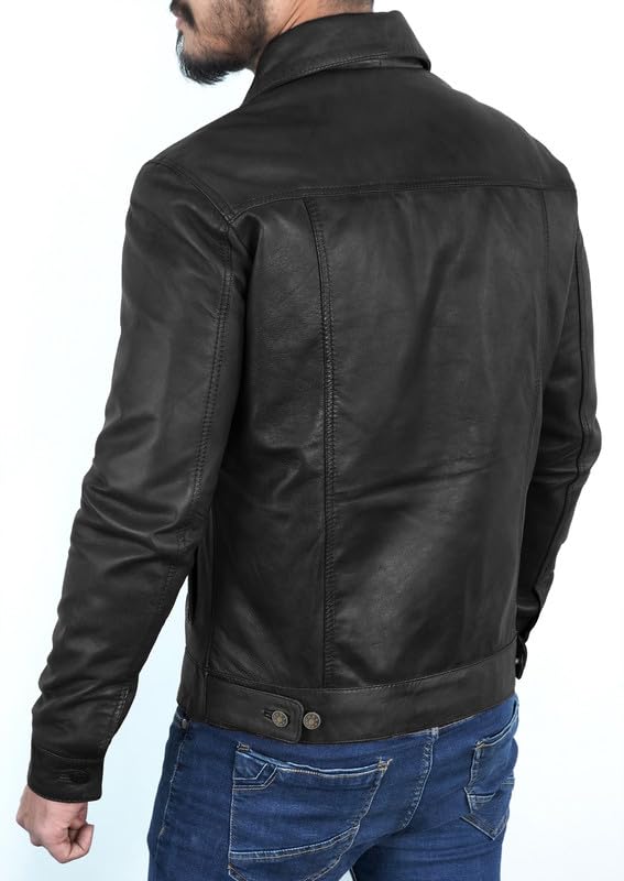 LP-FACON Mens Trucker Leather Jacket - Western Cowboy Leather Outerwear Jacket 4