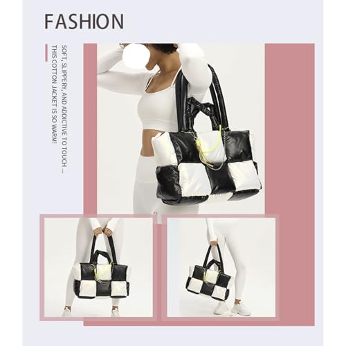 More information about Puffer Tote Bag Large Trendy Checkered Puffy Quilted Tote Bag for Women Quilted Bubble Shoulder Bags Lightweight Puffer Purse