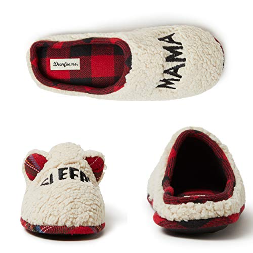 More information about Dearfoams Women's Family Collection Mama Bear Fluffy faux sherpa Clog Slipper, Large