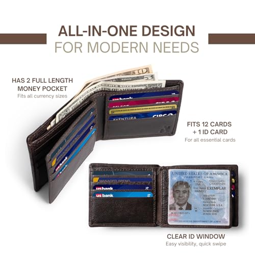 • COMPACT & TRAVEL-READY: Perfect Mens wallet for travel and everyday use. Holds 12 cards and cash organized while staying perfect for front-pocket carry!